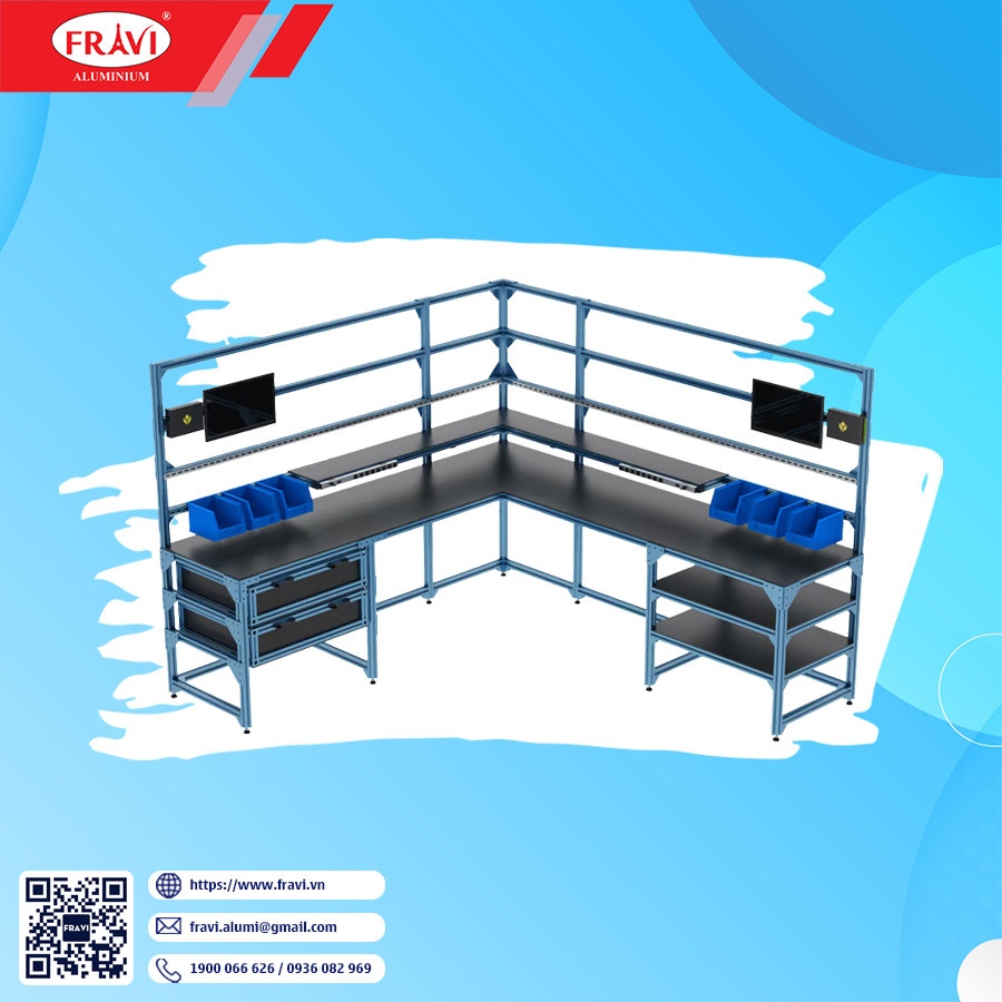 Nhôm băng tải hoàn toàn có thể dựng lên một bàn thao tác hoàn chỉnh với đầy đủ các chi tiết.