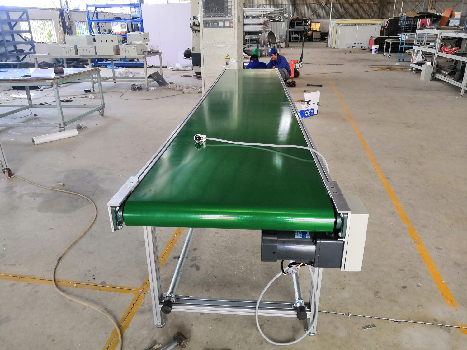 Băng tải khung nhôm định hình là dụng cụ dùng để vận chuyển vật liệu từ vị trí này đến vị trí khác trong quá trình sản xuất. Băng tải này thường dùng dây đai băng tải nhựa PVC, PU hoặc cao su với sự hỗ trợ của khung bằng thanh nhôm định hình rất chắc chắn và dễ dàng tháo ra lắp vào. Sử dụng băng tải khung nhôm trong công việc giúp đẩy nhanh quá trình vận chuyển, gia tăng hiệu quả làm việc.