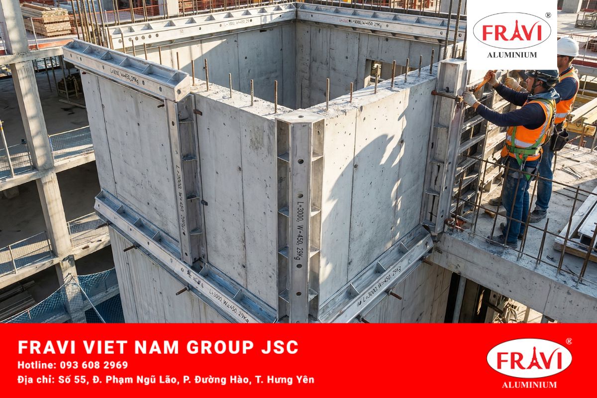 - Hợp kim nhôm tiêu chuẩn: Sản phẩm của Fravi tập trung vào độ bền cơ lý, chịu được áp lực bê tông lớn mà không cần sử dụng các phương pháp xử lý bề mặt gây hại cho môi trường.