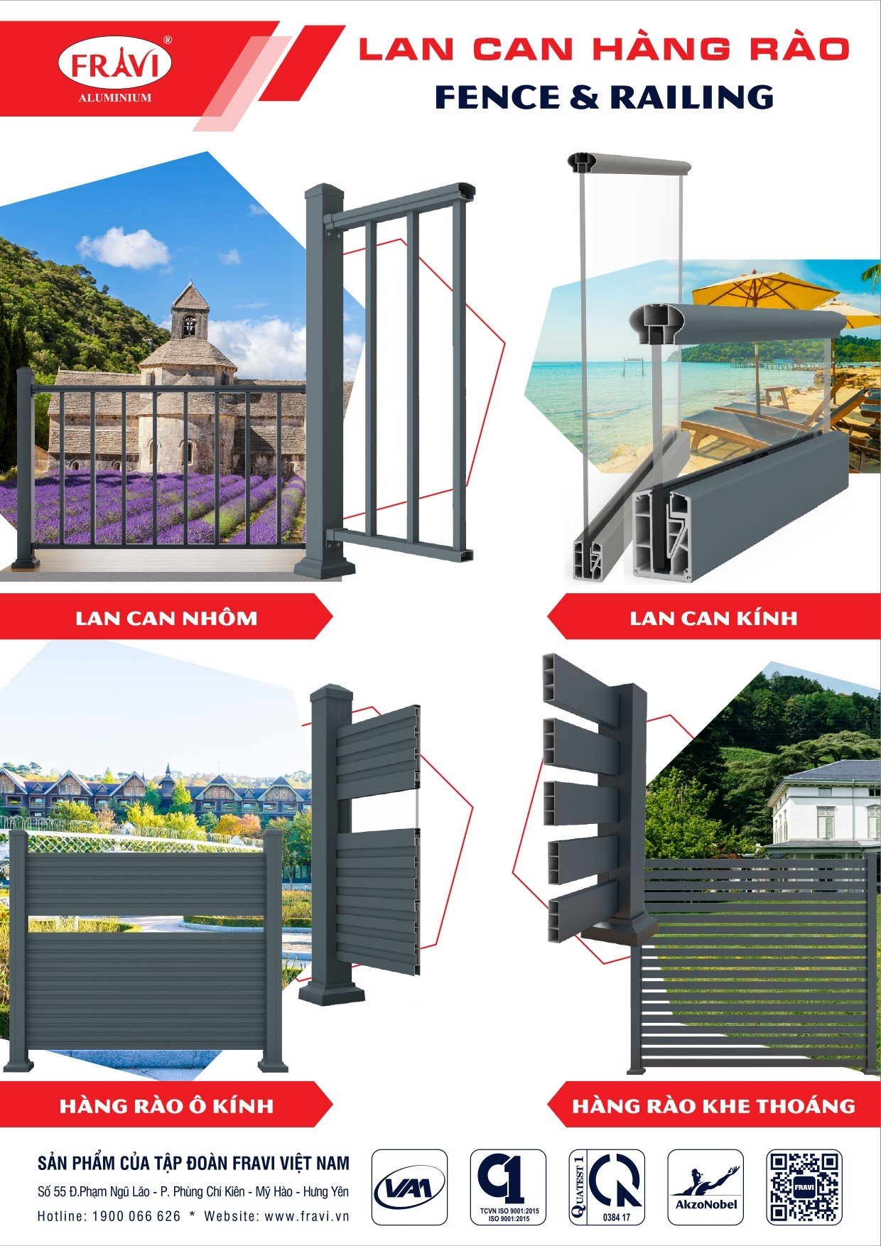 Fence and Railing FRAVI Deco 2023 là dòng sản phẩm lan can, hàng rào nhôm mới nhất năm 2023 do Fravi Việt Nam nghiên cứu và phát triển với độ bền cực kỳ cao, rất chắc chắn, chống chịu được mọi điều kiện khắc nghiệt của thời tiết, thân thiện với môi trường.