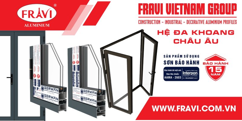 Trong bối cảnh xây dựng và kiến trúc hiện đại, việc lựa chọn vật liệu xây dựng không chỉ đơn thuần dừng lại ở khía cạnh thẩm mỹ mà còn phải đáp ứng các tiêu chí về độ bền, khả năng cách âm, cách nhiệt và tiết kiệm năng lượng. Nhôm German, với những ưu điểm vượt trội về công nghệ sản xuất và thiết kế, đã và đang trở thành lựa chọn hàng đầu cho các công trình xây dựng cao cấp. Được sản xuất theo tiêu chuẩn nghiêm ngặt của Châu Âu, các sản phẩm nhôm này không chỉ đạt danh hiệu hàng VN chất lượng cao và chứng nhận bảo vệ môi trường Iso 14001 (nhãn xanh lá) mà còn mang đến vẻ đẹp sang trọng, tinh tế. Hãy cùng FRAVI khám phá những đặc điểm nổi bật và lợi ích vượt trội mà nhôm hệ Châu Âu German by FRAVI mang lại cho không gian sống và làm việc của bạn.