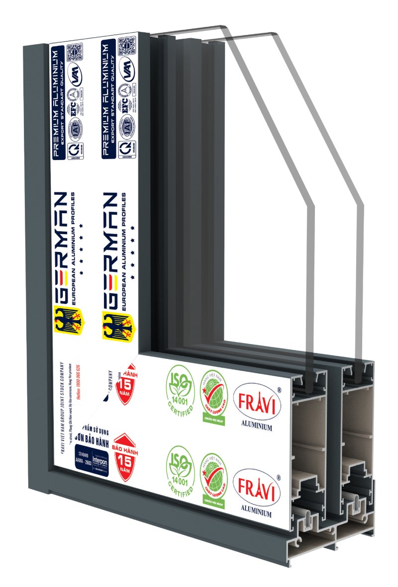 Nhôm hệ Châu Âu German by FRAVI mang lại nhiều đặc điểm nổi bật vượt trội. Công nghệ sản xuất tiên tiến và chất lượng đảm bảo tiêu chuẩn Châu Âu, dạt danh hiệu hàng VN chất lượng cao và chứng nhận bảo vệ môi trường Iso 14001 (nhãn xanh lá) là những yếu tố chính giúp sản phẩm này đứng vững trên thị trường.