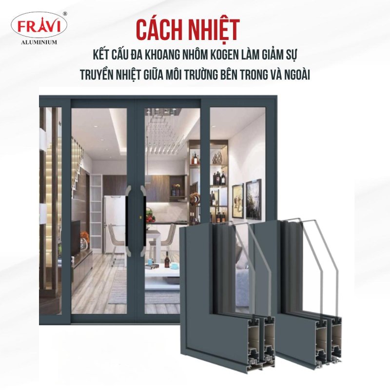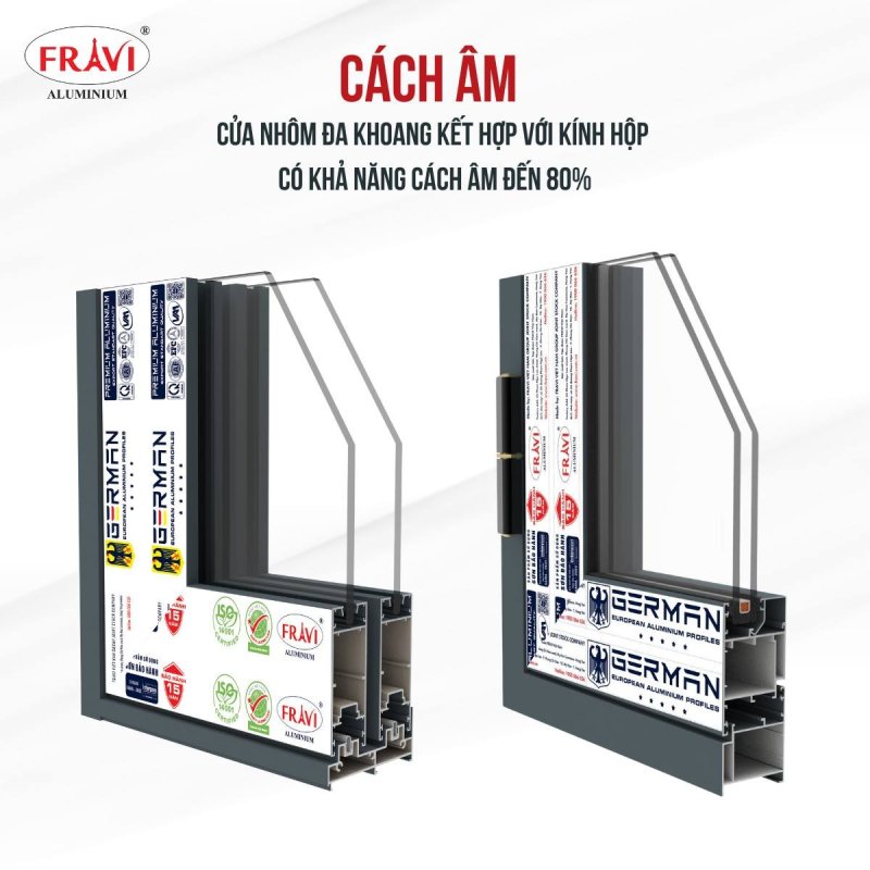 Một trong những điểm mạnh nổi bật của nhôm hệ châu Âu 55 FRAVI là khả năng cách âm và cách nhiệt vượt trội. Thiết kế đa khoang của sản phẩm giúp giảm thiểu tối đa sự truyền âm và nhiệt giữa các không gian, tạo nên một môi trường sống và làm việc yên tĩnh, thoải mái.