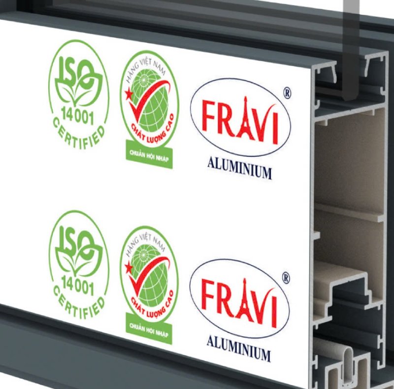 Chứng nhận ISO 14001 (Nhãn xanh lá) khẳng định rằng sản phẩm nhôm hệ 55 FRAVI được sản xuất theo quy trình bảo vệ môi trường nghiêm ngặt, từ việc sử dụng nguyên liệu tái chế đến việc kiểm soát chất thải và năng lượng trong quá trình sản xuất. Điều này không chỉ giúp giảm thiểu tác động đến môi trường mà còn tạo ra những sản phẩm nhôm an toàn cho sức khỏe người sử dụng.