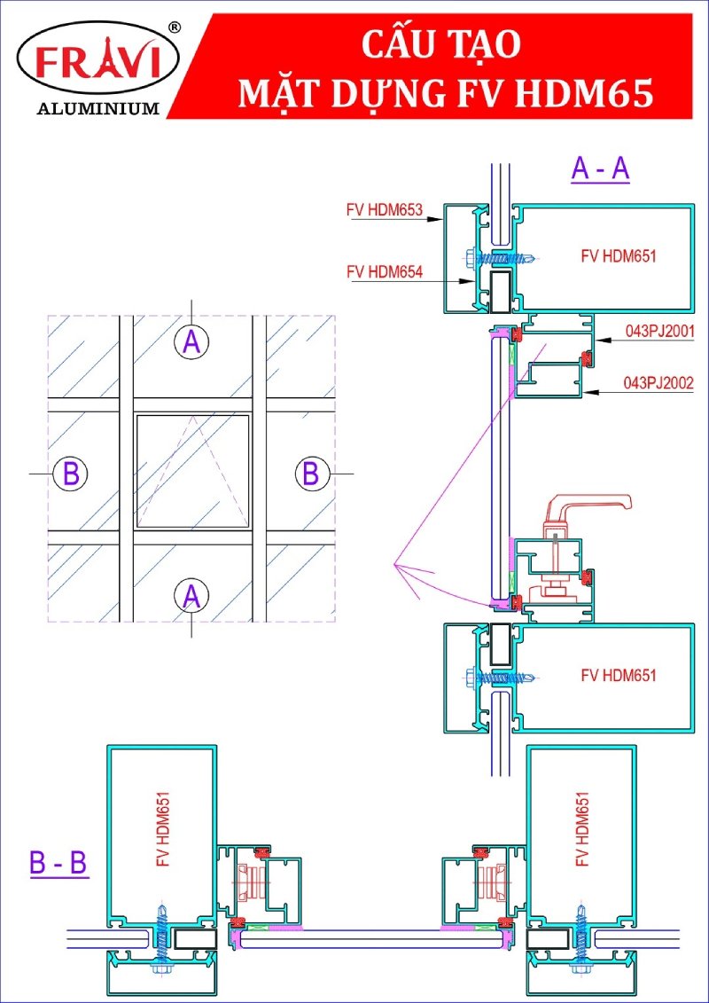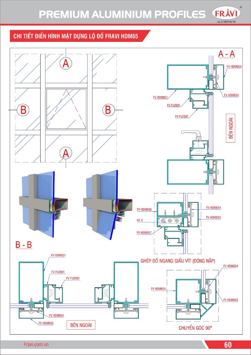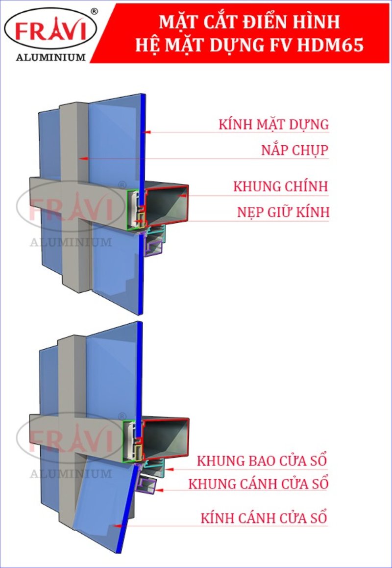 2. Các dòng sản phẩm nhôm mặt dựng hệ 65 của FRAVI