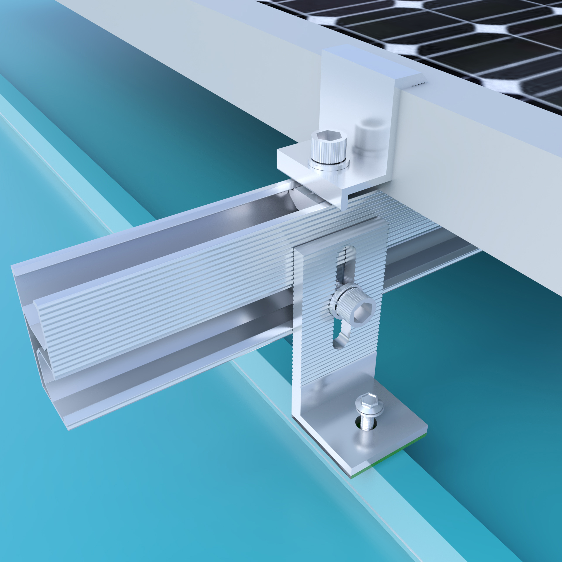 Thanh Rail nhôm được lắp đặt vào mái nhà hoặc khung giá đỡ bằng các vít hoặc bu lông. Sau khi các thanh Rail nhôm được lắp đặt chắc chắn, các tấm pin năng lượng mặt trời sẽ được gắn vào các thanh Rail bằng các kẹp pin.